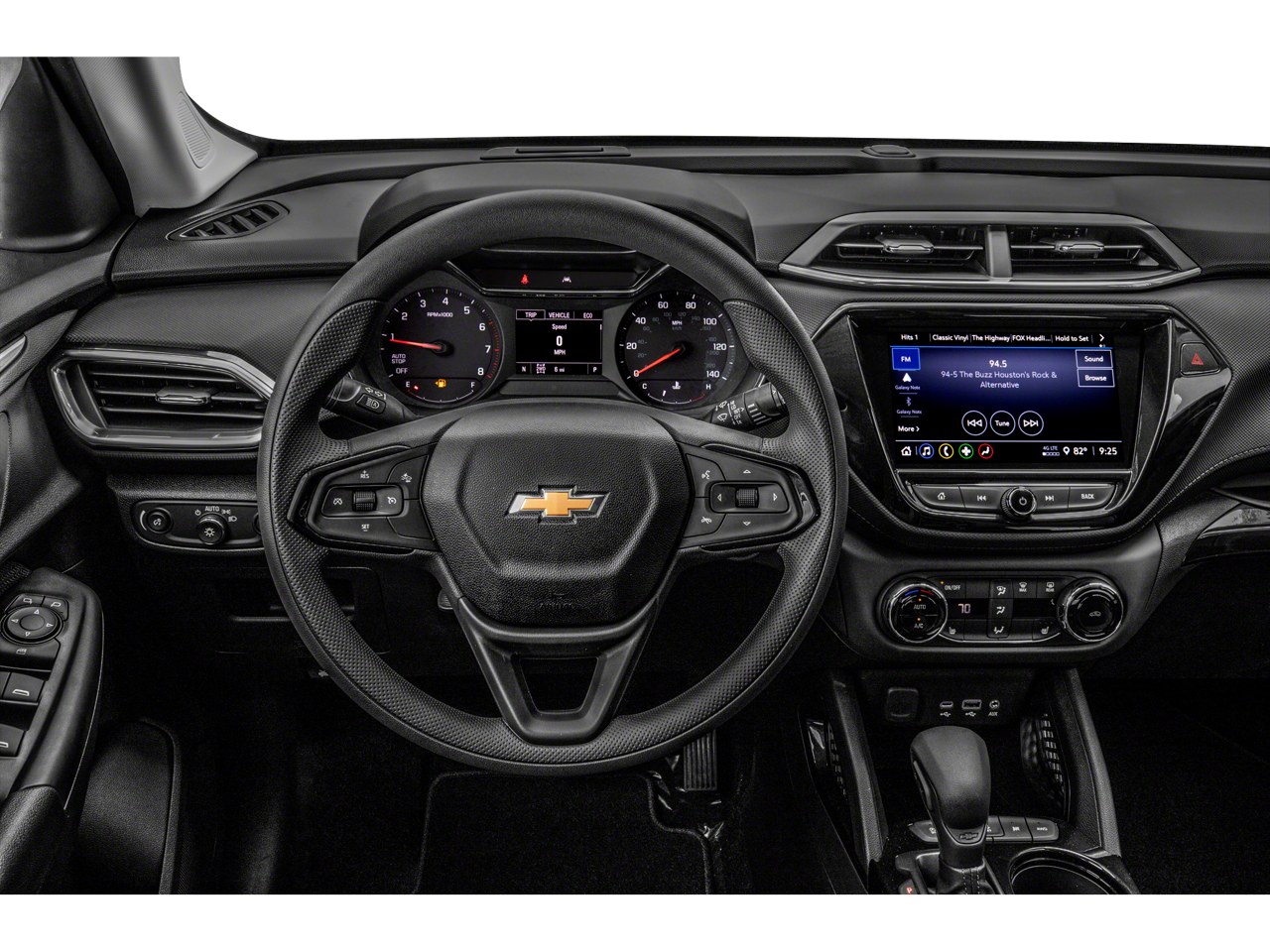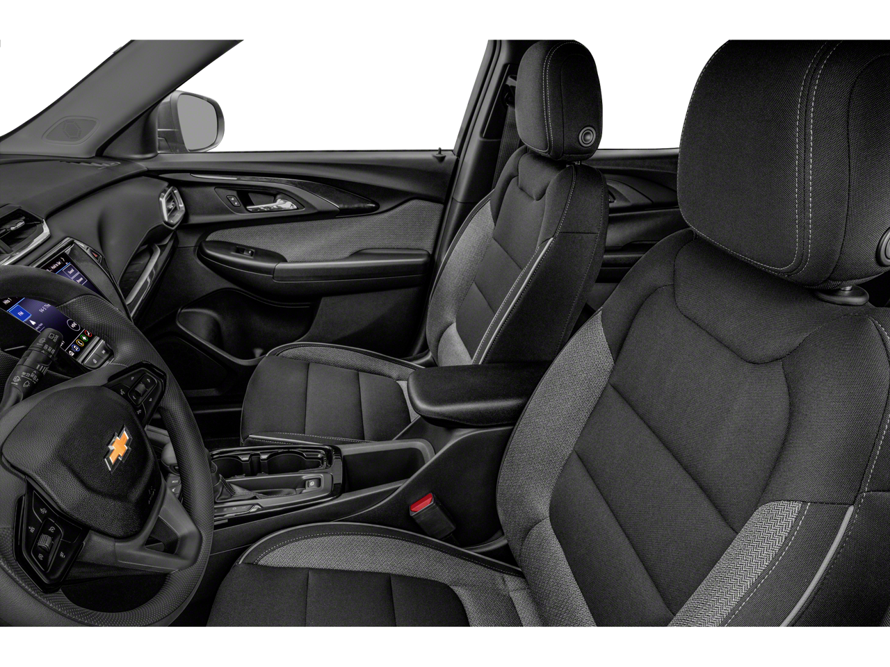 The TrailBlazer's sleek, modern design turns heads wherever you go. Its bold grille, sculpted body lines, and 17 high-gloss black machined aluminum wheels give it a commanding presence on the road. Inside, the spacious cabin is filled with thoughtful amenities, including heated front seats, an auto-dimming rearview mirror, and wireless Apple CarPlay and Android Auto integration.